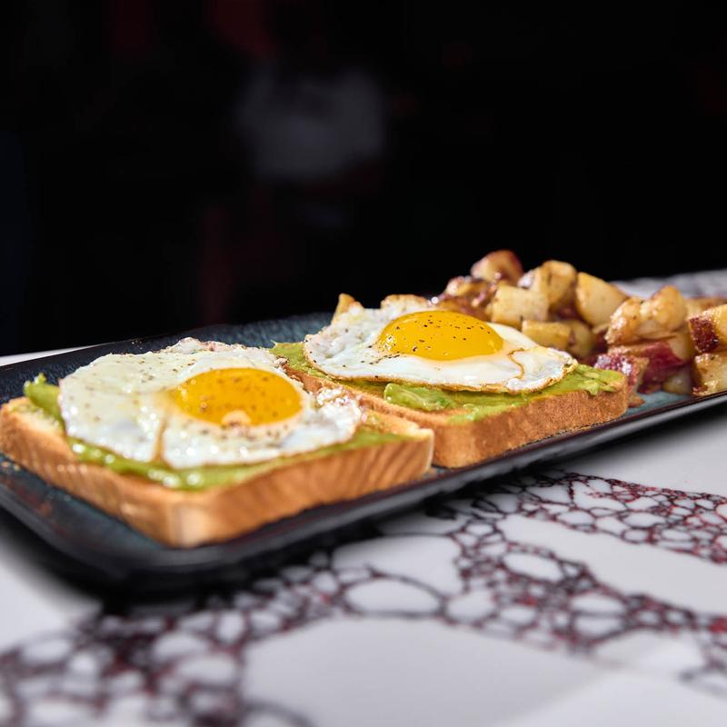Fresh Smashed Avocado, Italian Seasoning, Red Chili Flakes, Fried Egg, accompanied with Country Potatoes